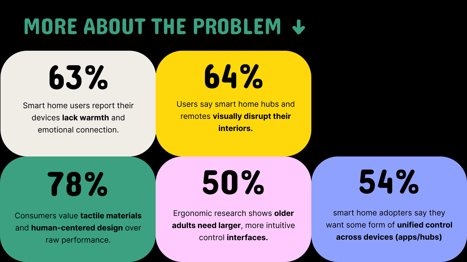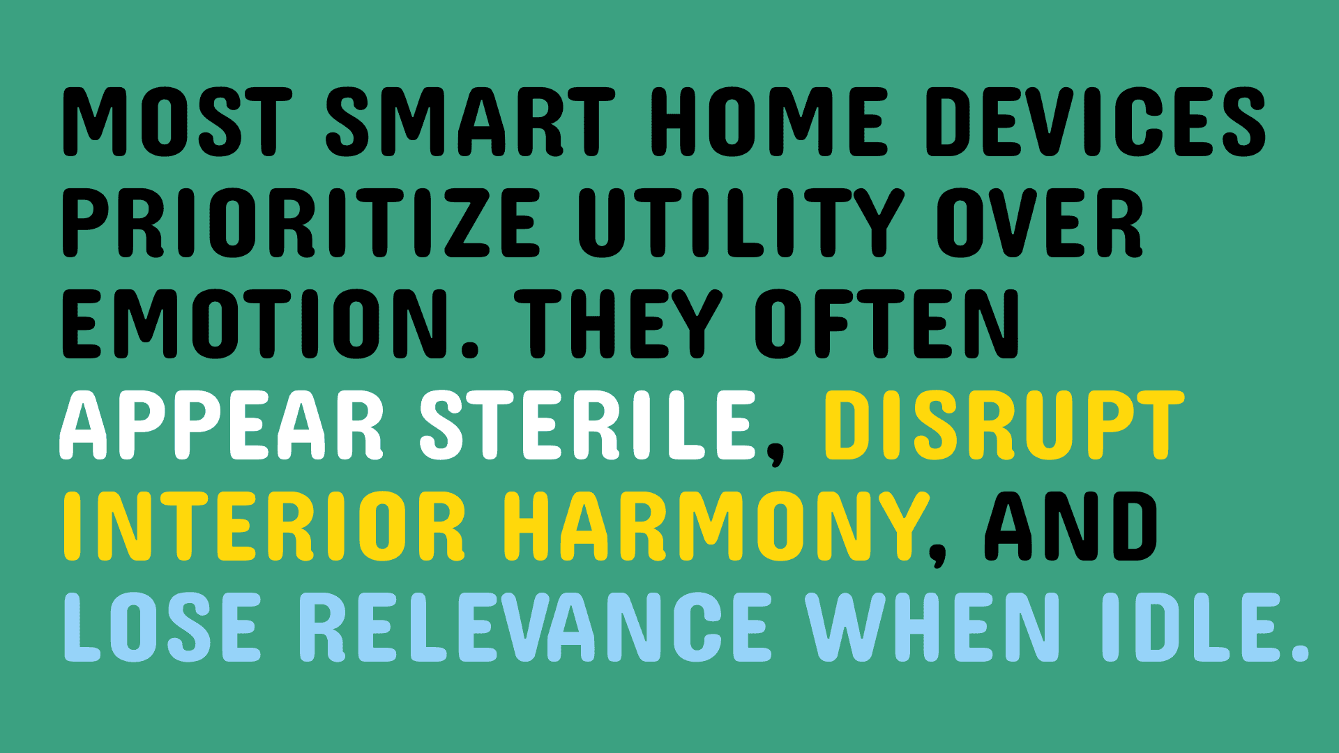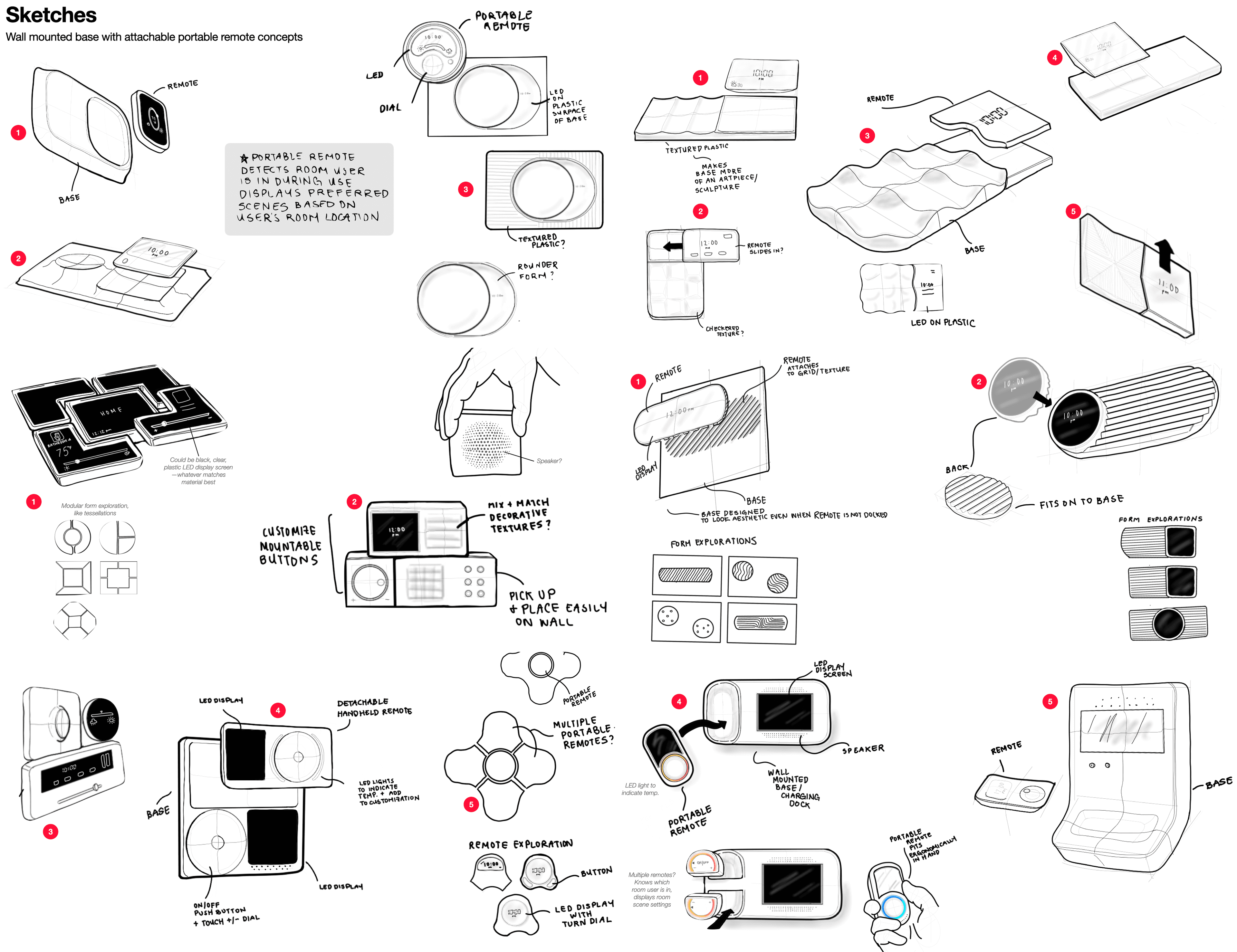 My response was to reimagine the smart home controller as a sculptural experience — a design that feels as natural as it is functional. By turning the remote and dock into a tessellated, artful pair, the device invites touch, aligns with home aesthetics, and remains meaningful whether active or idle.